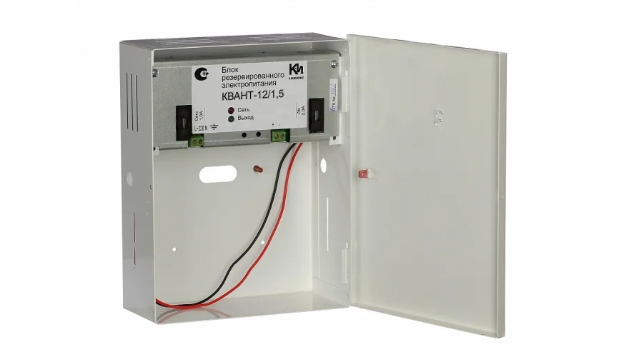 БРП Квант 12/1,5-7,0 резервный источник питания 13В, 1,5А, кратковременно до 2А, рабочий диапазон напряжения сети 150-265В, корпус IP31 под АКБ 7,0Ач (в комплект не входит), защитное отключение АКБ, световая индикация режимов работы