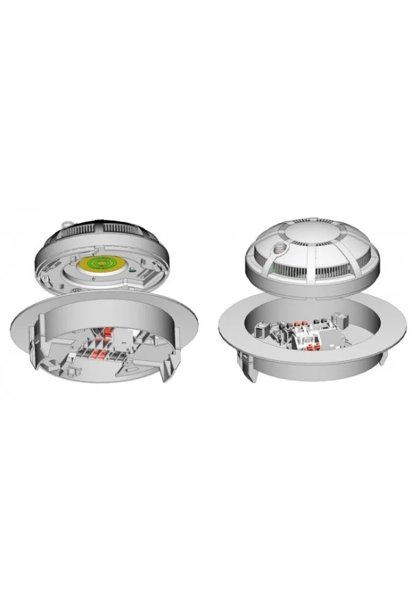 Извещатель имеет возможность установки на подвесной потолок, используя для этого специальную розетку, совмещенную с монтажным кольцом.