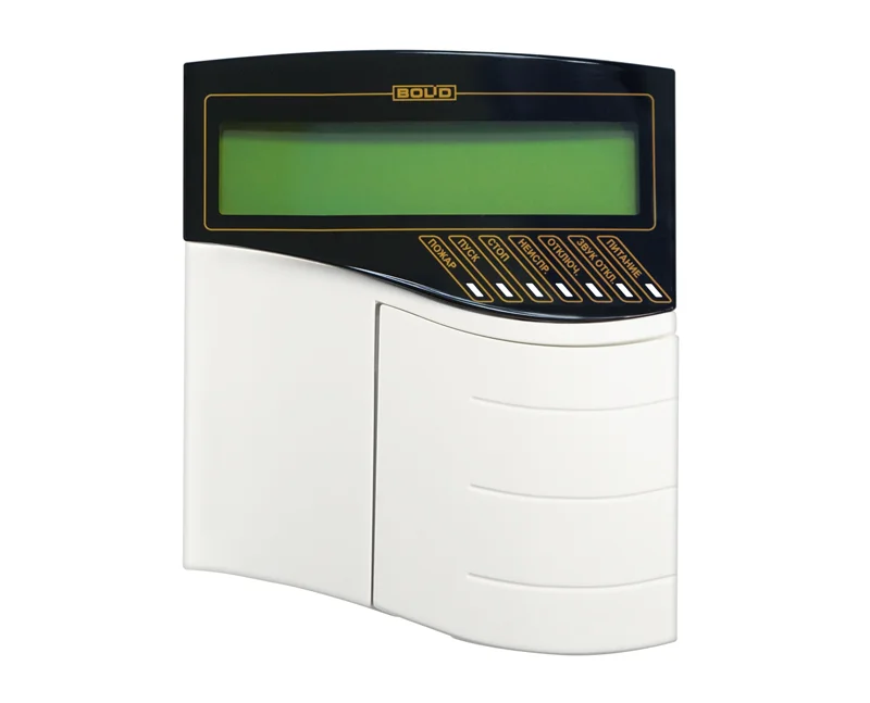 Пульт контроля и управления охранно-пожарный с ЖК экраном 2х16 символов, до 127 подключаемых блоков, количество зон до 511, количество разделов до 128, количество контролируемых входов/выходов до 2048, журнал событий до 32000, два RS-485, U-пит.10.2...28.4 В, I-потр.120 мА (макс.), резервный источник питания CR2032, IP30, t-раб.-10...+55°С, 140 114 25 мм.