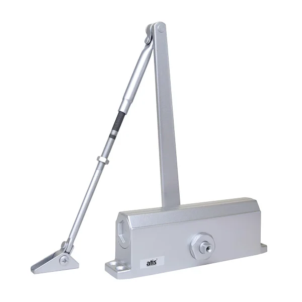 DC-604 Silver Доводчик ATIS Доводчик верхнего монтажа с рычажной передачей Наработка на отказ: 500000 циклов Две независимо регулируемые скорости Усилие закрытия DIN4: вес двери до 80кг ширина двери до 1100мм Исполнение тяги: рычажная Тип штанги: коленная Цвет: серебро
