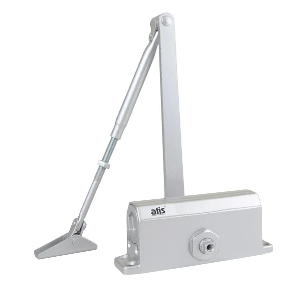 DC-603 Silver Доводчик ATIS Доводчик верхнего монтажа с рычажной передачей Наработка на отказ: 500000 циклов Две независимо регулируемые скорости Усилие закрытия DIN3: вес двери до 60кг ширина двери до 950мм Исполнение тяги: рычажная Тип штанги: коленная Цвет: серебро