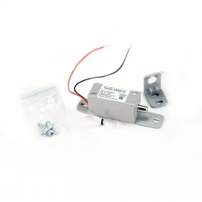 Promix-SM491.10 защелка электромеханическая Универсального применения. Имеет возможность аварийного открытия. Усилие удержания 150 кг. С ригелем, кожухом и прямоугольным кронштейном крепления. Нормально закрытый, напряжение питания DC 12 В/0,65 А, цвет - серебро.