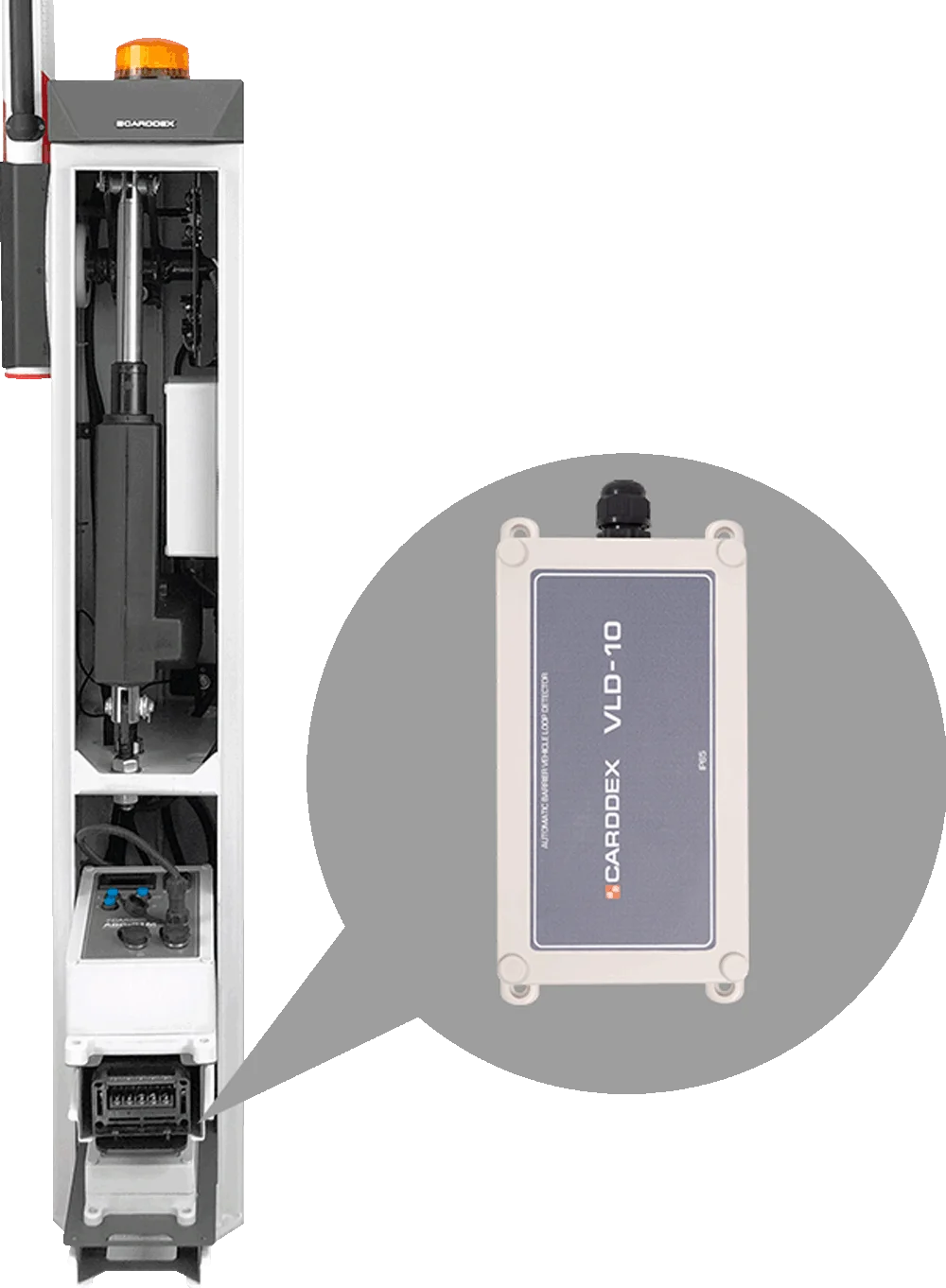 Модуль индукционной петли «VLD-10» Предназначен для определения наличия транспортного средства в рабочей зоне стрелы и автоматического закрытия шлагбаума после проезда автомобиля. Один канал для подключения фидера индукционной петли. Диапазон частот: 20 кГц до 170 кГц. Время реакции: 10 мс. Регулировка чувствительности. Подключение на стандартный разъём расширения блока управления серии «ABC-21M»