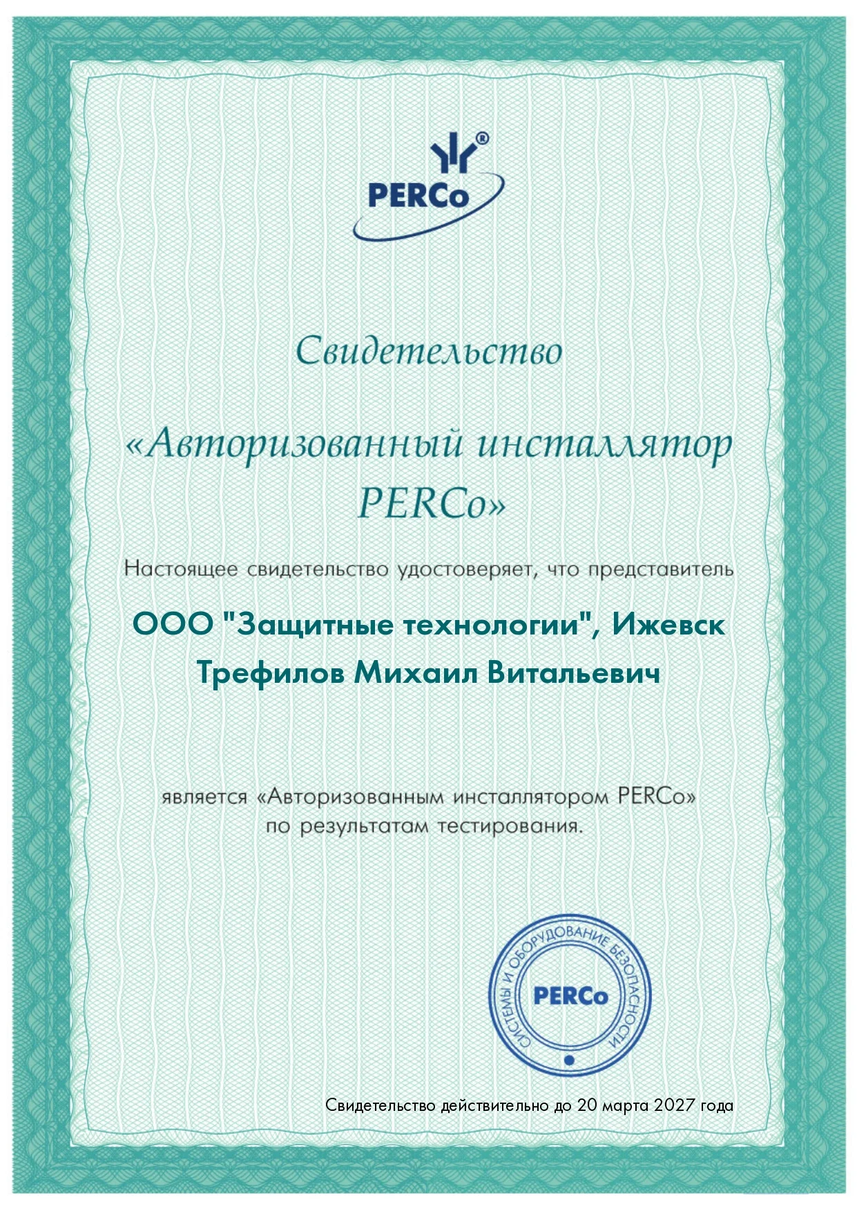 Авторизованный инсталлятор PERCo 2026г.