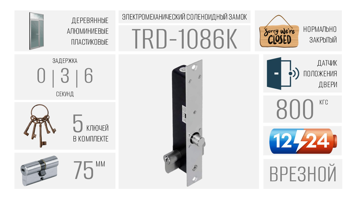 Новинка от TANTOS - соленоидные замки TRD-1086K, нормально-закрытые, с цилиндром.
